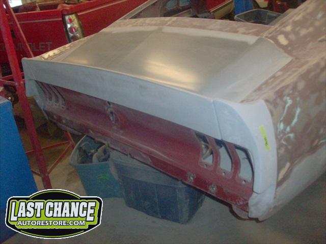 The Shelby reproduction rear deck lid was fitted to the trunk support brackets. The two rear quarter panel extensions were dry fitted next. Lots of work will be needed to ensure proper fit to the quarter panels and fiberglass extension pieces.