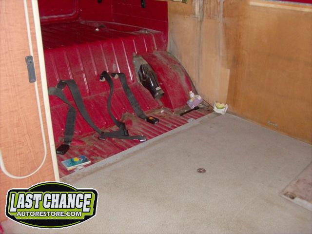 The interior has been removed, the curtains, cabinets, fridge, sink, bed, and flooring to metal. This will allow us to assess the amount of fabrication that will be needed in the interior floor and wheel well areas.