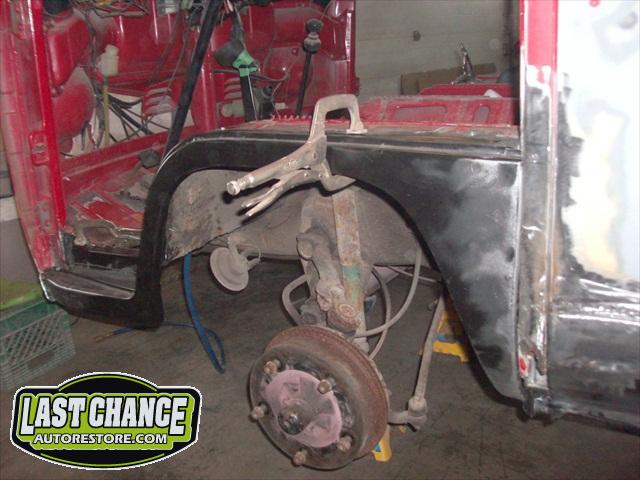 There will be a large amount of fabrication and new metal work to perform, there is excessive use of body filler in the typical common rust areas. There are some structural issues at the frame rails that we will also be addressing.