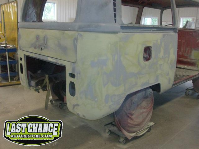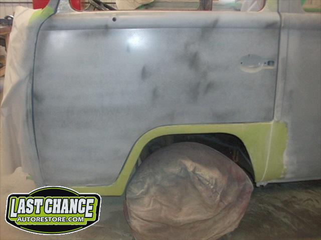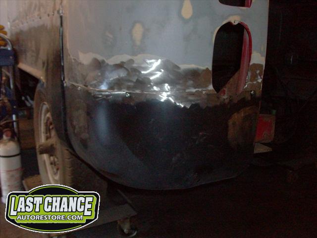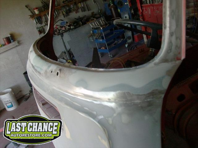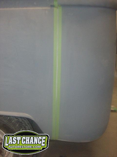A substantial amount of fabrication was completed. The next step was block sanding and smoothing of all body panels. All of the correct factory "grooves and seams" were done.
