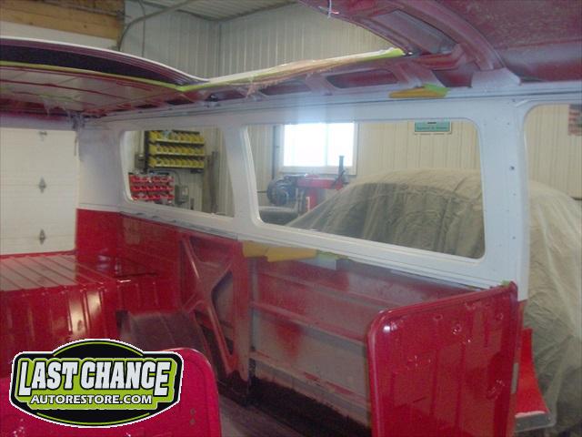 Nellie received her custom two tone paint job. We painted her with Premium Single Stage paint. Our client requested VW Authentic Cloud White (VW Code L581) and Montana Red (VW Code L30H) paint finish.