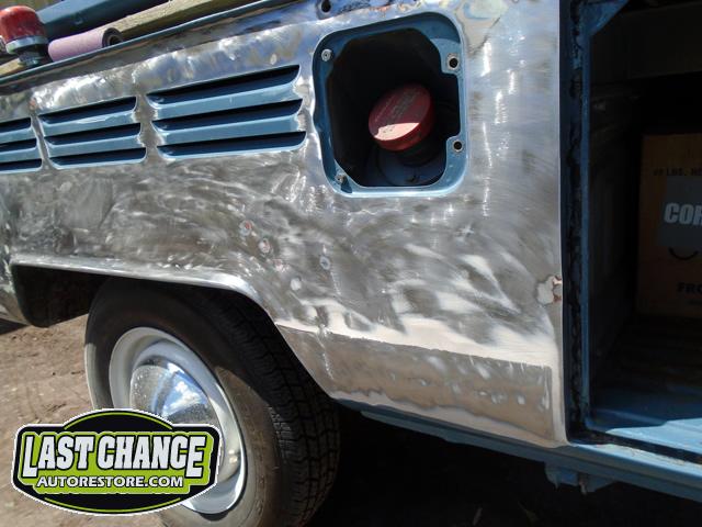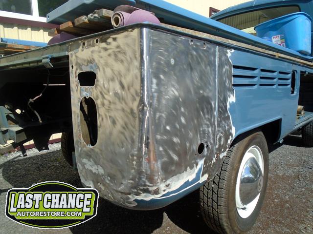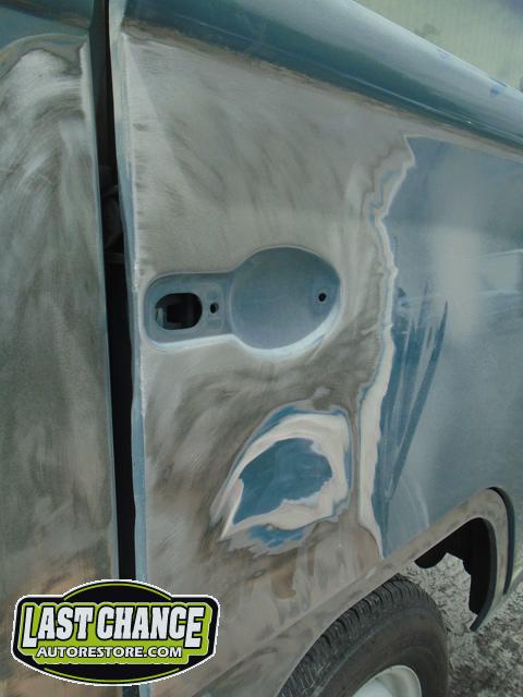 We continued to sand the exterior exposing all of the nasty previously incorrect repairs done to this singlecab over the years.
