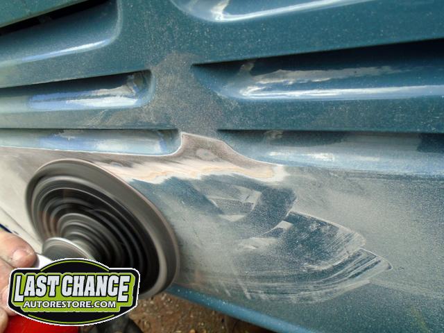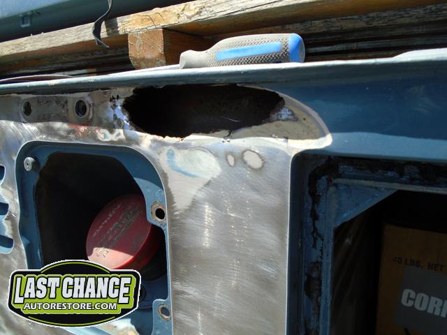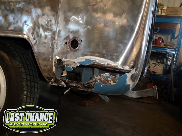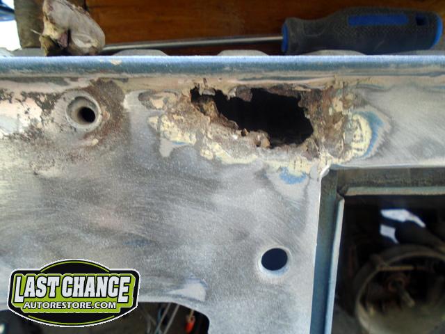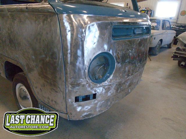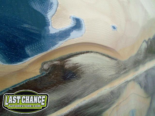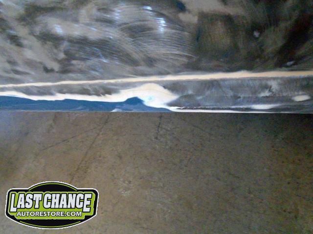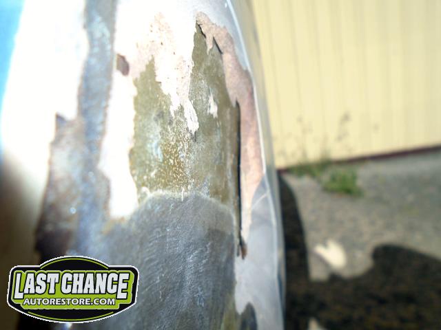 Both rear lower corners below the tail lights had no steel in those areas. We found an enormous amount of body filler packed on top of drywall mesh tape. When the body fillers were sanded down, it exposed the large areas where there was no steel.