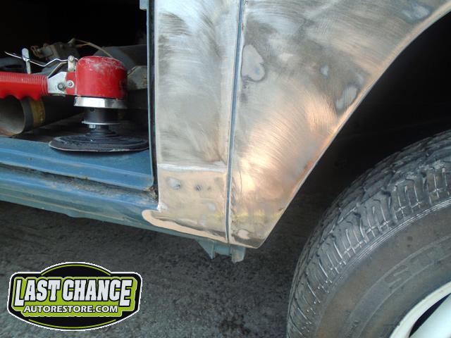 It was surprising to see the large amounts of body fillers previously used in attempt to try to level out the body panels (metal patches were incorrectly welded on top of rusted out sections instead of properly cutting the rusted metal away and welding new panels flush to the original metal sections).