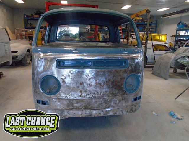 We will continue to sand the thick amounts of paint and body fillers to prepare this nice VW for its future steps on the road to restoration.