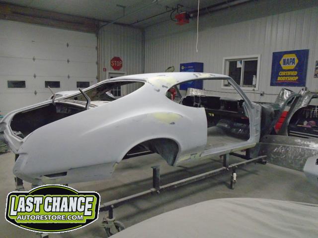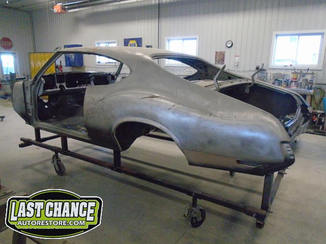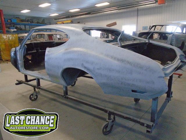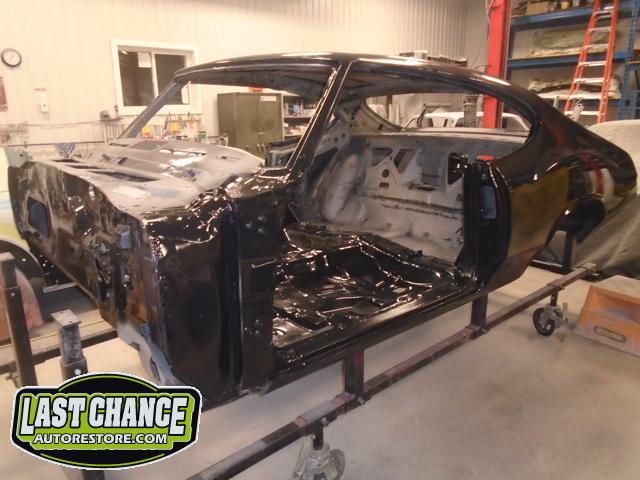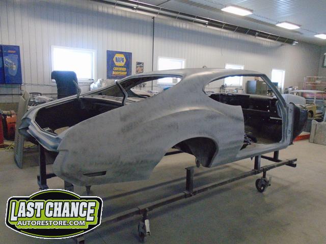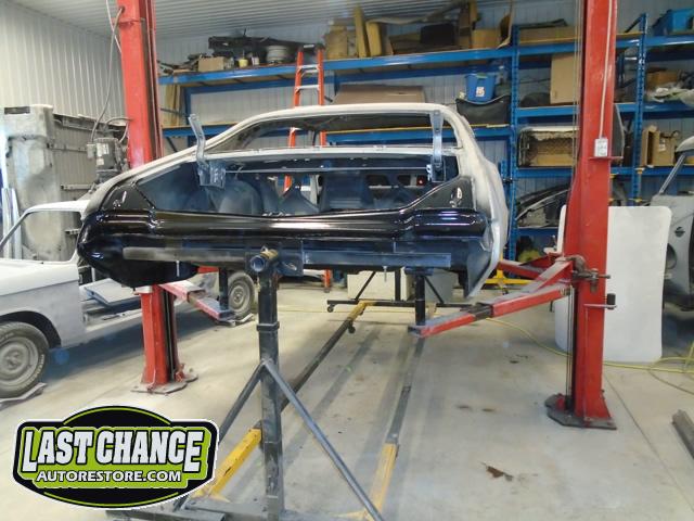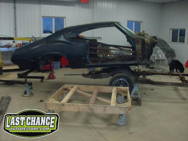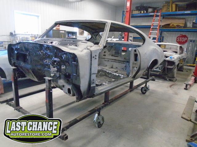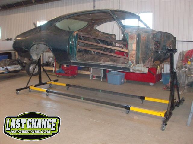 Our next step was to lift Goblin's body off of the rotisserie and mount it on a special dolly so the exterior body shell can have the body refinishing begin.