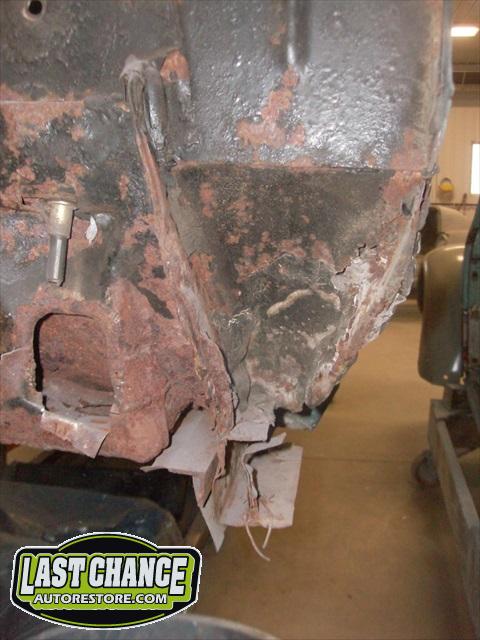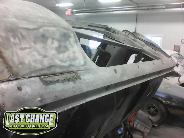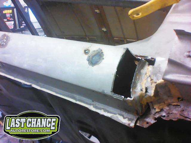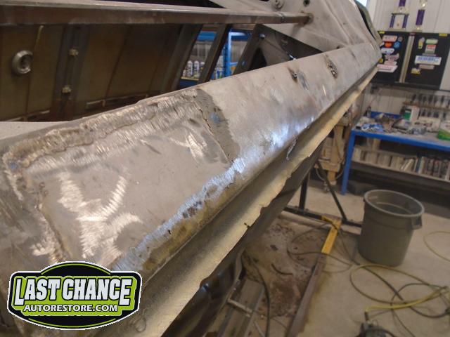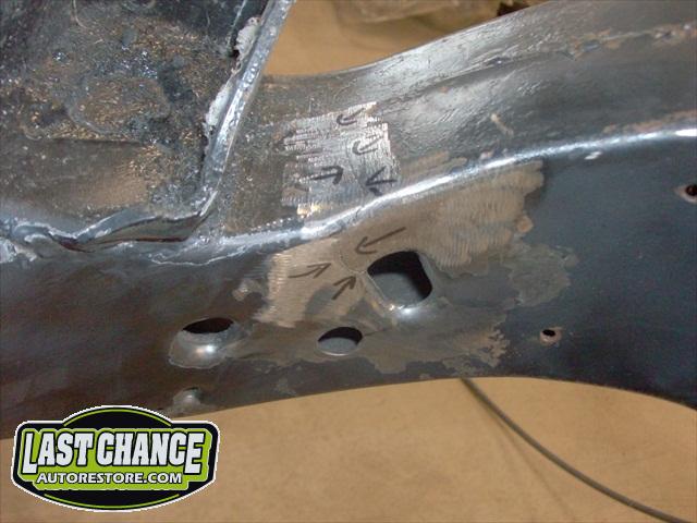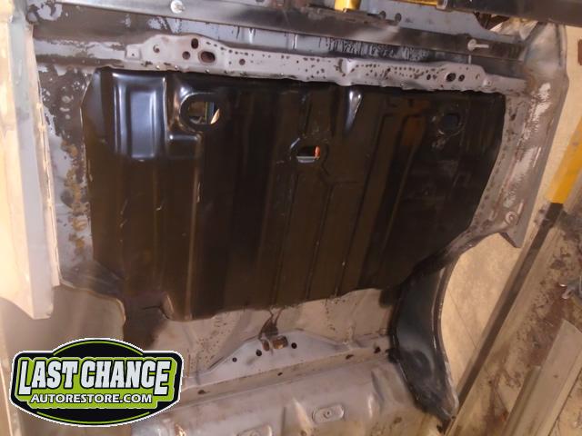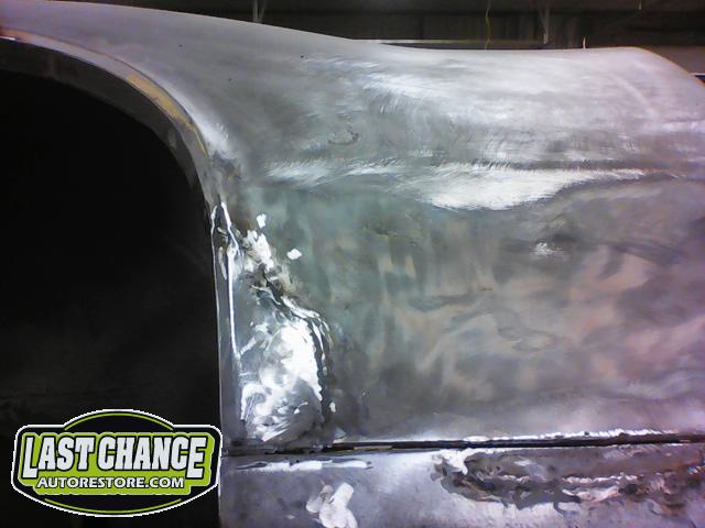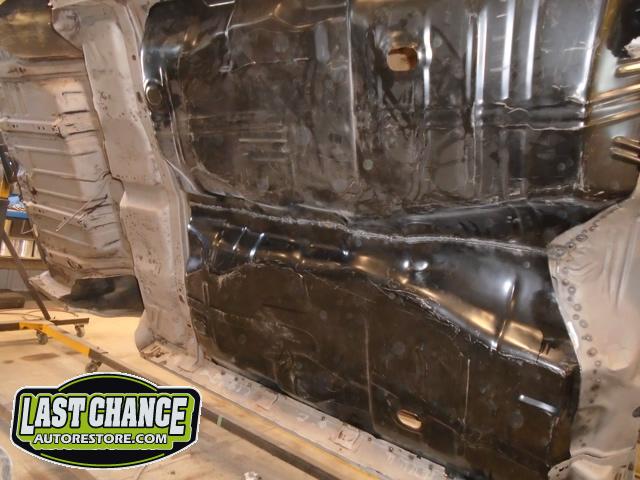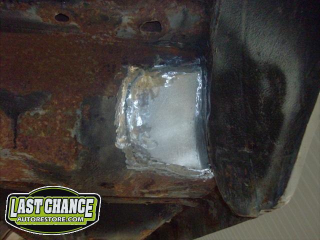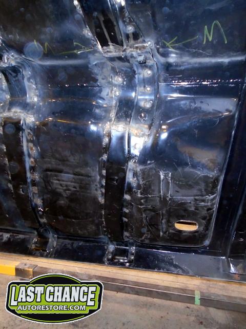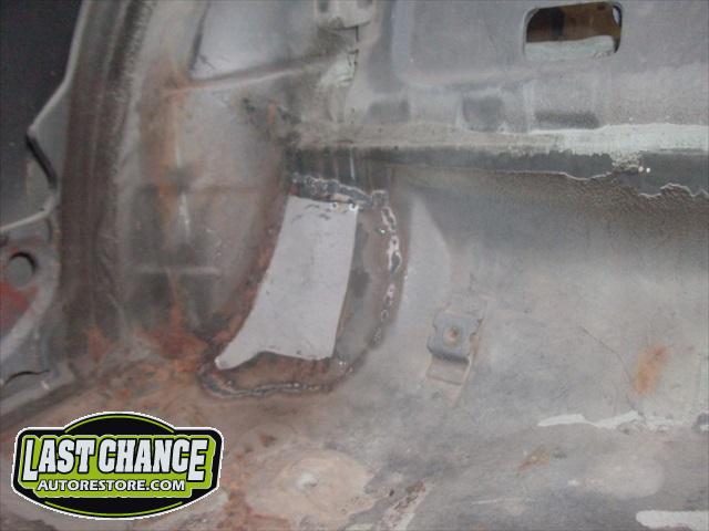 Several rusted sections in the inner and outer rocker panel areas were all cut out and replaced with new metal. The rear wheel wells were also treated to new steel where needed.