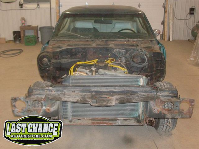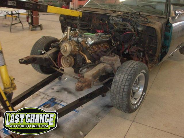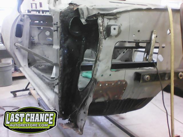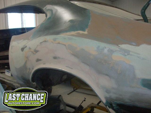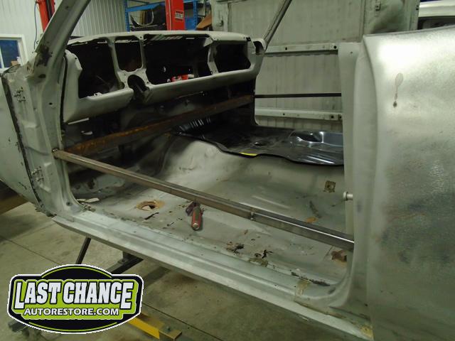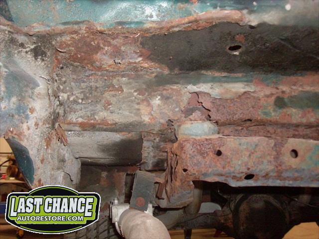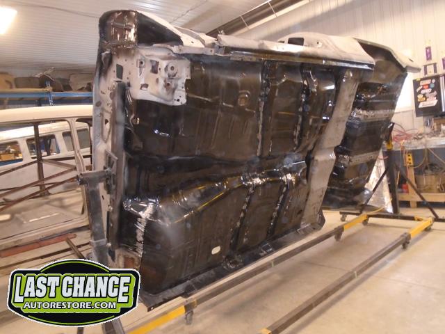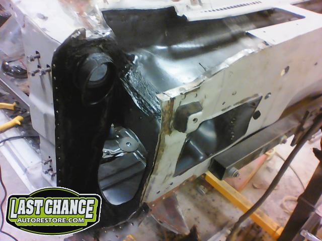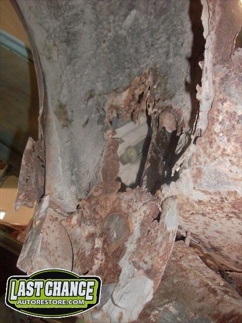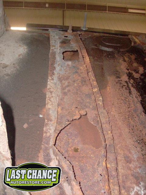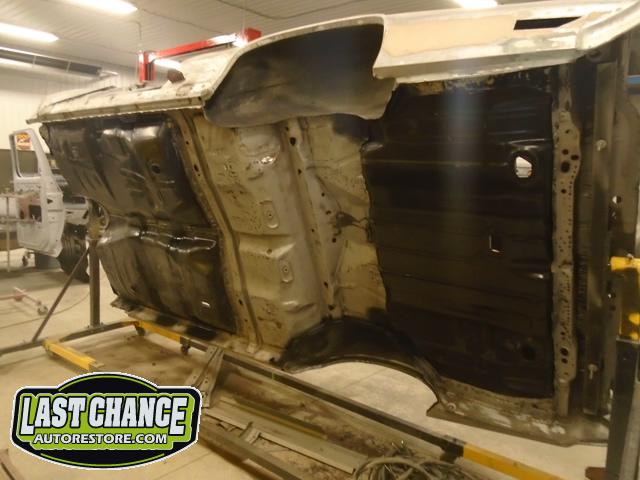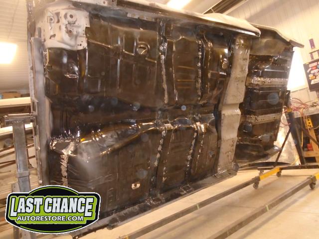 Several rusted sections in the inner and outer rocker panel areas were all cut out and replaced with new metal. The rear wheel wells were also treated to new steel where needed.