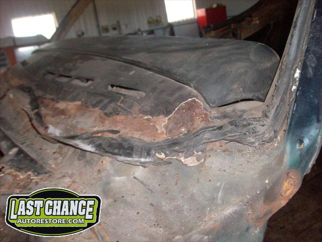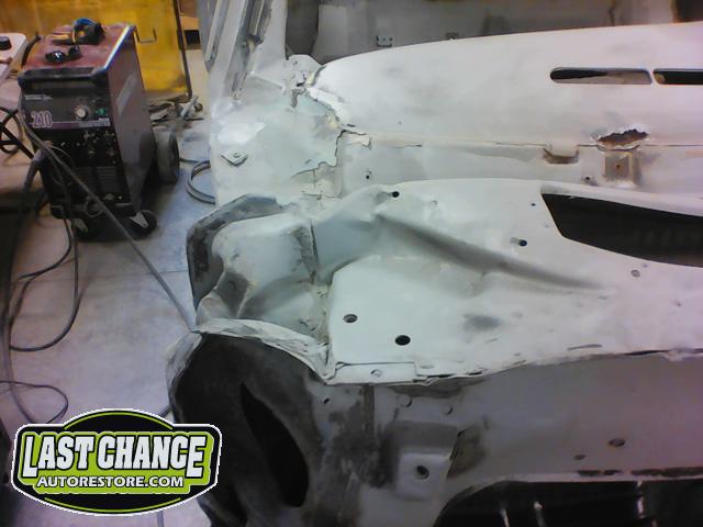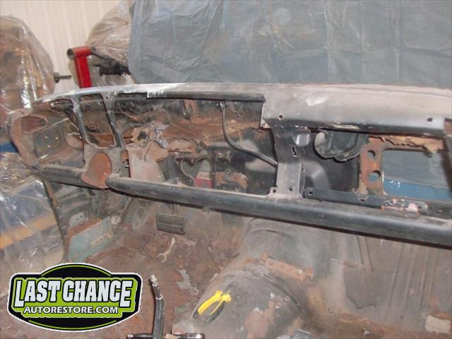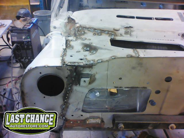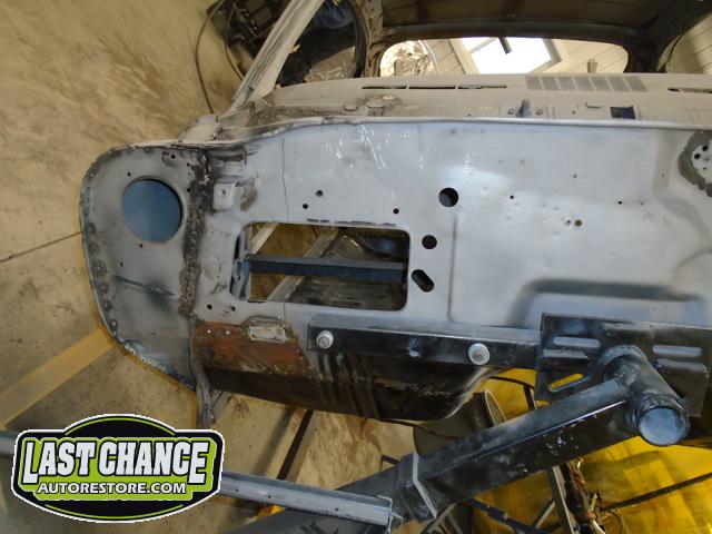 Damage to the front passenger firewall (in the heater box area) was removed and reconstructed as new.