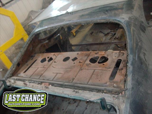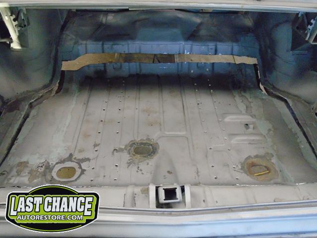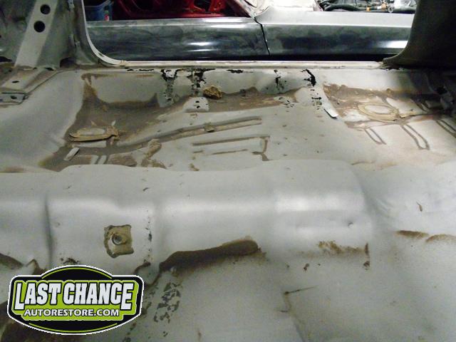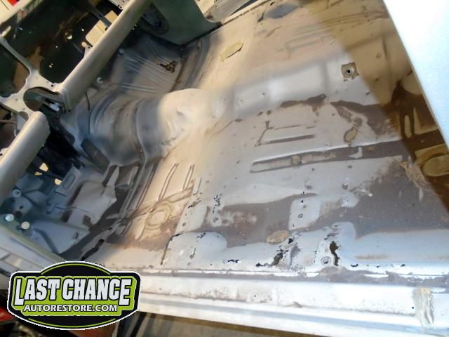 After the blasting was completed, it exposed lots of hidden poor previous repairs to the floor and trunk sections (hidden fiberglass and body filler was under thick undercoating).