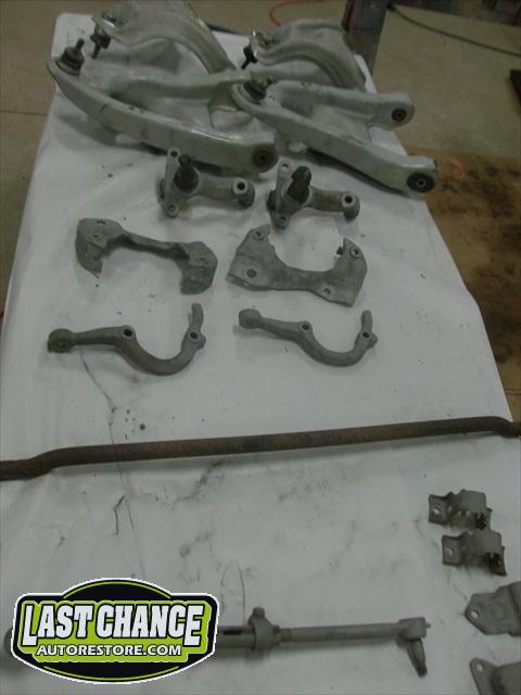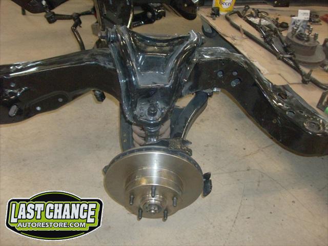 Our attention went back to the "New" frame. The front suspension, steering and brake components were taken apart, degreased and sandblasted. We applied two coats of special POR15 high gloss black paint to all of the components. New shocks, brakes, bearings and seals were installed, along with new brake rotors, brake pads and calipers.