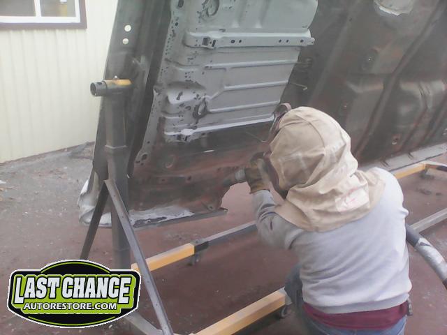 Work on Goblin's "New" body was next. The complete body shell was media blasted both inside and the underside.
