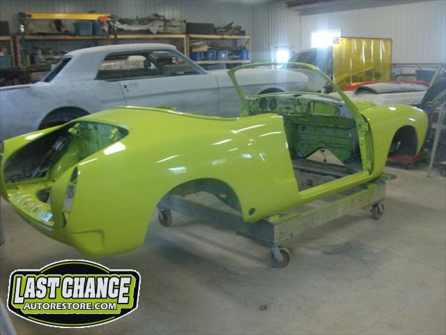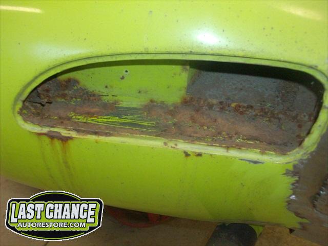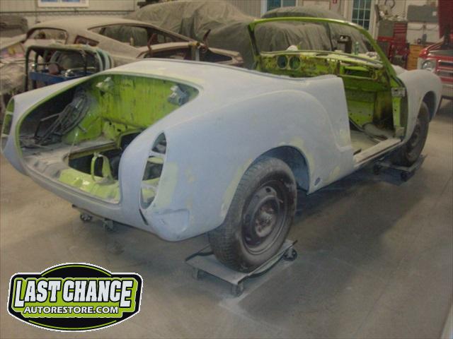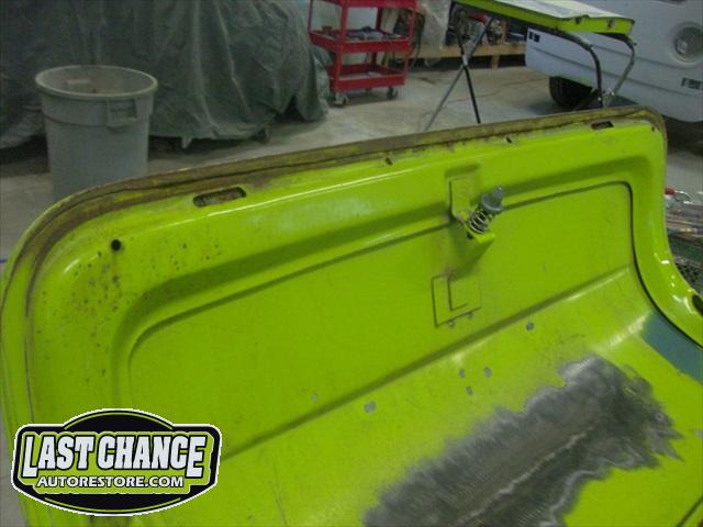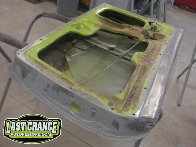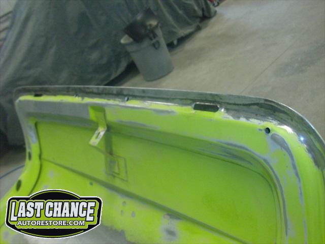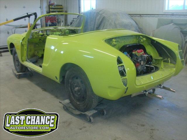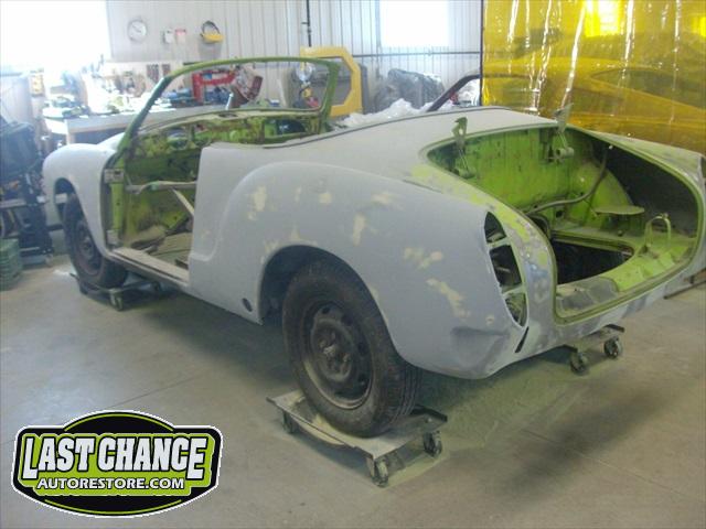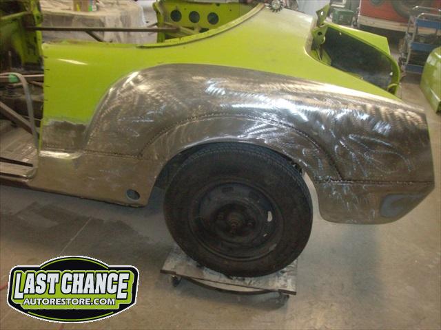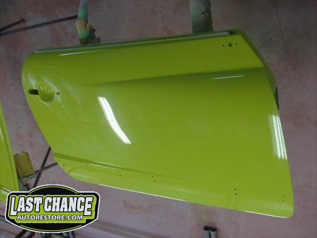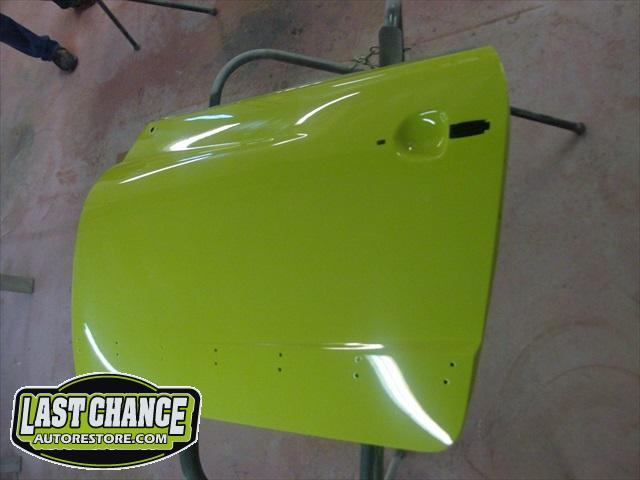 The front hood, engine lid and doors were worked on next. After many hours of repairs and body smoothing, they were all painted.