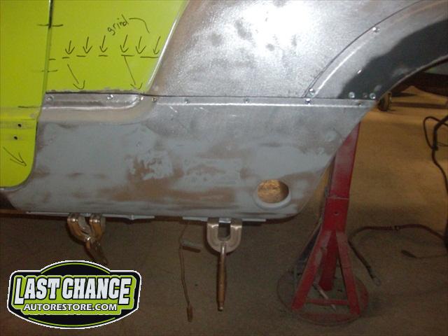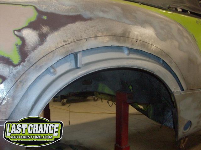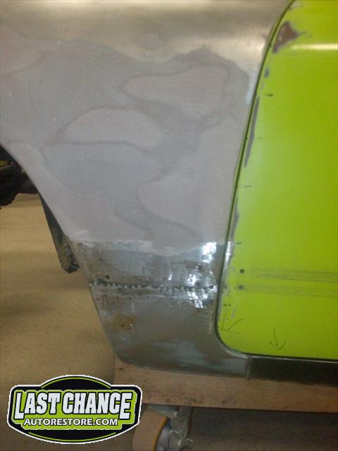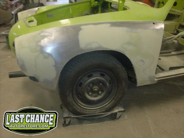 Neve needed complete heater channels on both sides, all lower metal around the car is new. After the extensive fabrication was complete, Neve's body panels were smoothed, primed and block sanded several times to get her to a nice smooth finish.