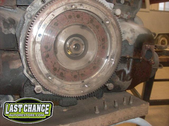The newly rebuilt engine was bolted back up to the transmission (after replacing the clutch, pressure plate and release bearing).