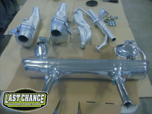There were several oil leaks found. The bottom end of the engine is quite strong with no concerns with the crankshaft and connecting rods. The pistons, piston rings and pots were replaced with new. The engine also received new push rod tubes, new (German made) high quality gasket set and new flywheel. All of the engine tin was sandblasted and powder coated high gloss black. Neve's heater boxes were degreased, repaired and treated to 3 coats of high heat silver exhaust paint. Her exhaust system was upgraded with a factory correct muffler with a high gloss ceramic coating. Triple plated chrome exhaust pipes finish the nice look.
