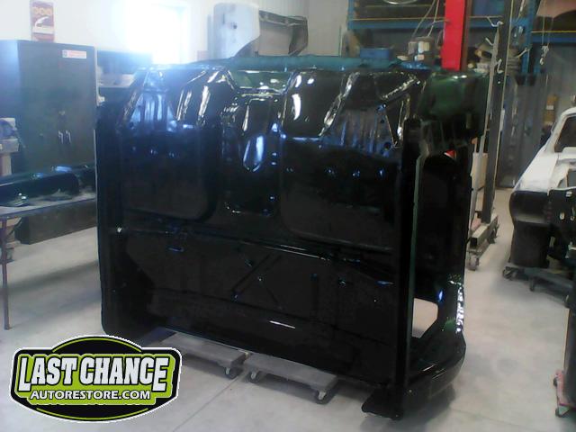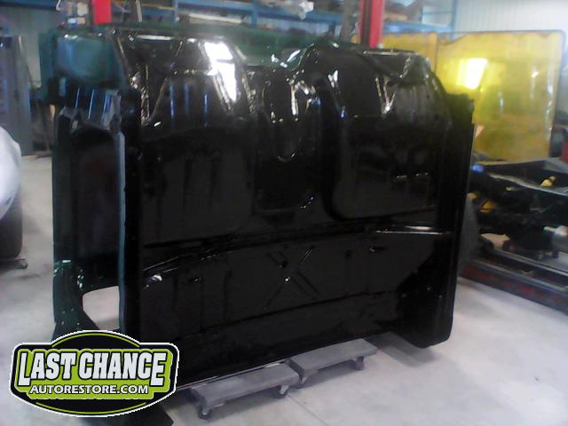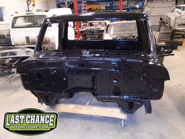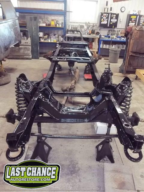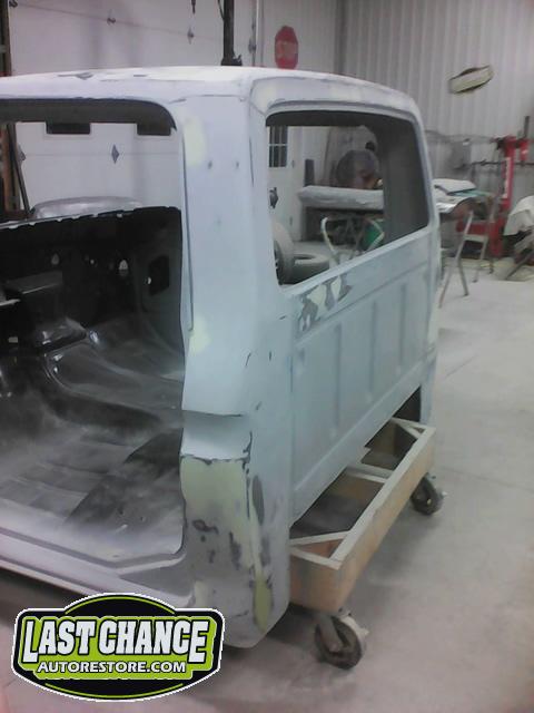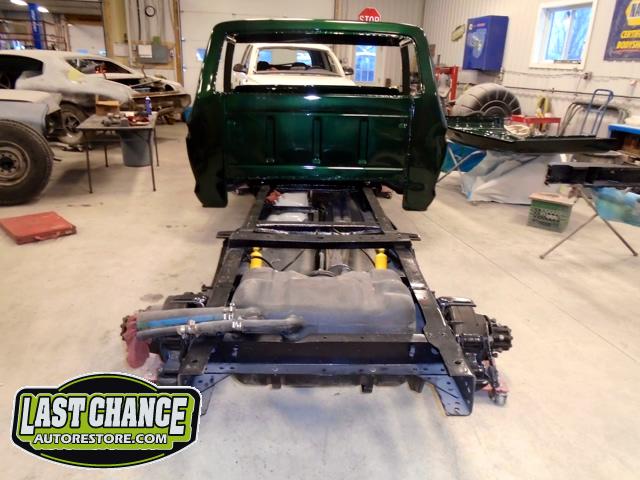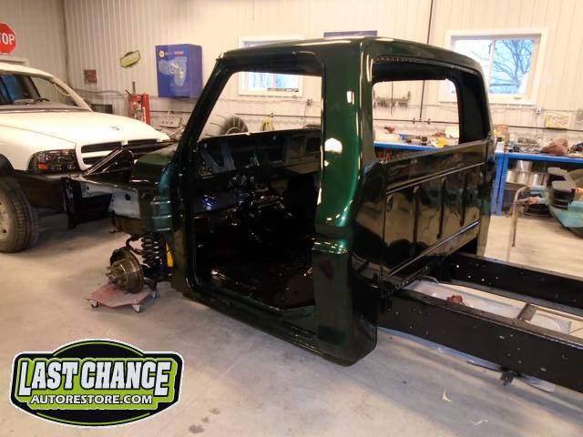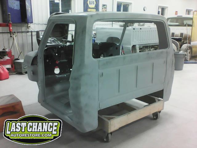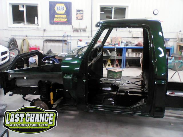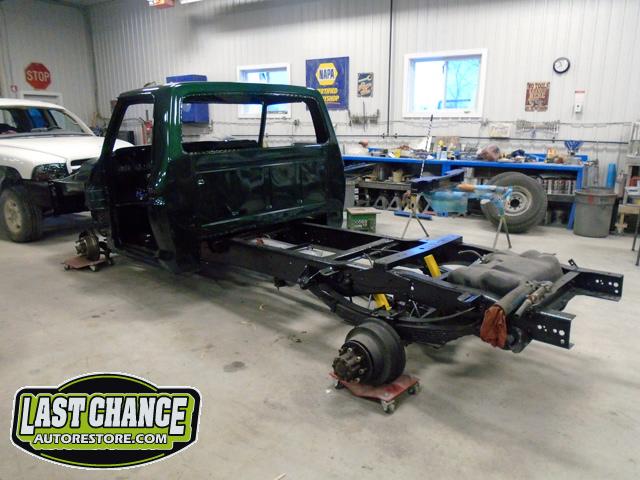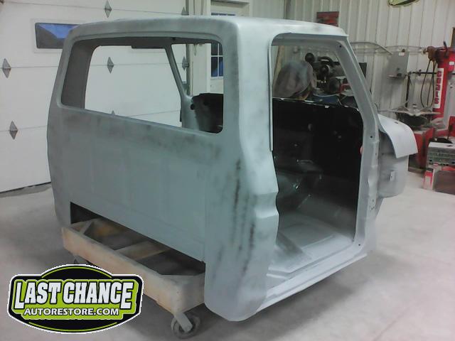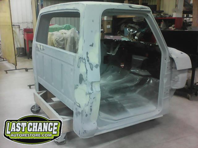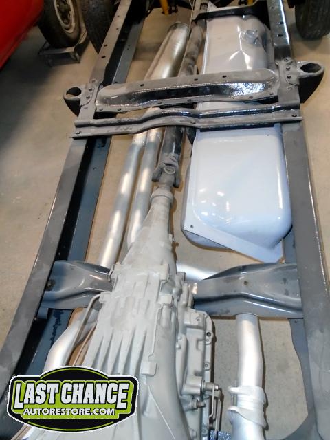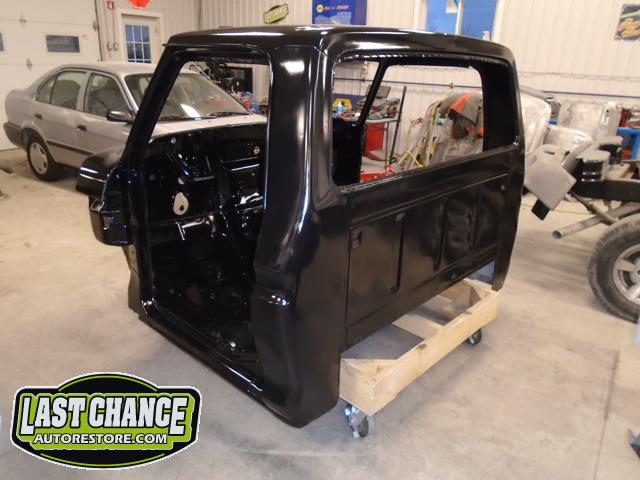 The cab bottom received 2 coats of black anti rust paint before it was set on all new rubber cab mounts on the completely rebuilt frame.