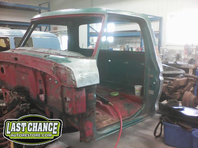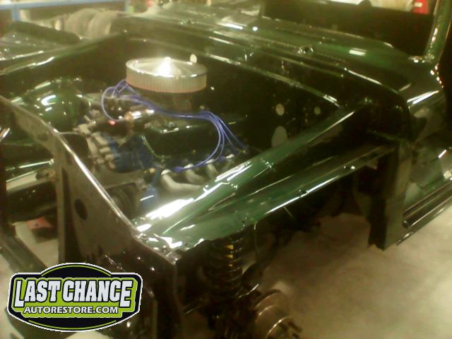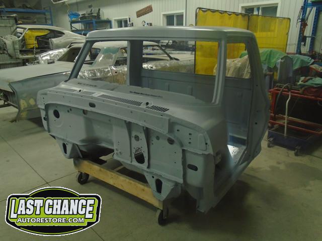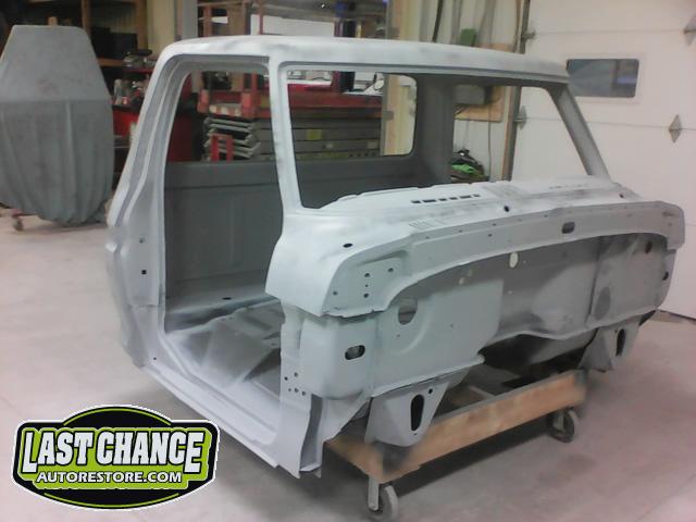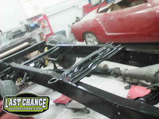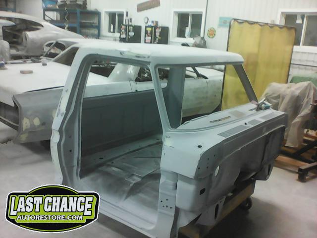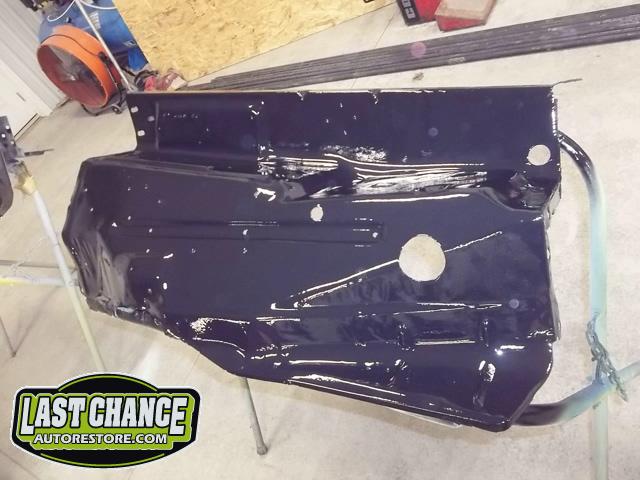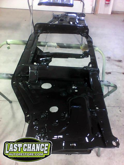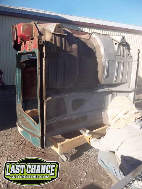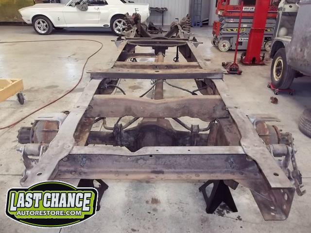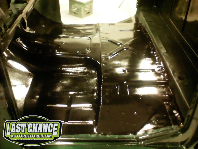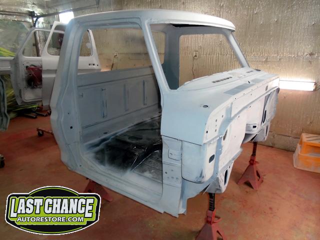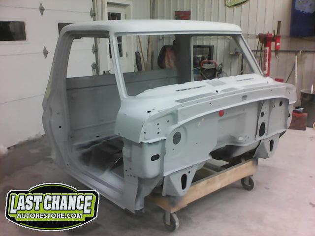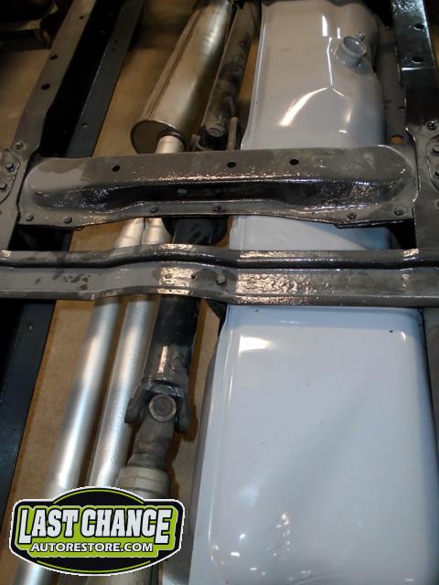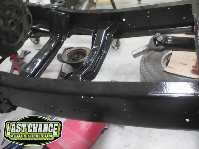 The cab bottom received 2 coats of black anti rust paint before it was set on all new rubber cab mounts on the completely rebuilt frame.