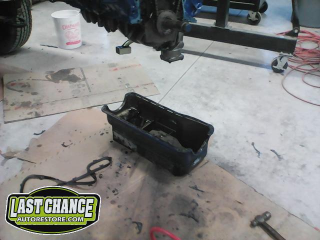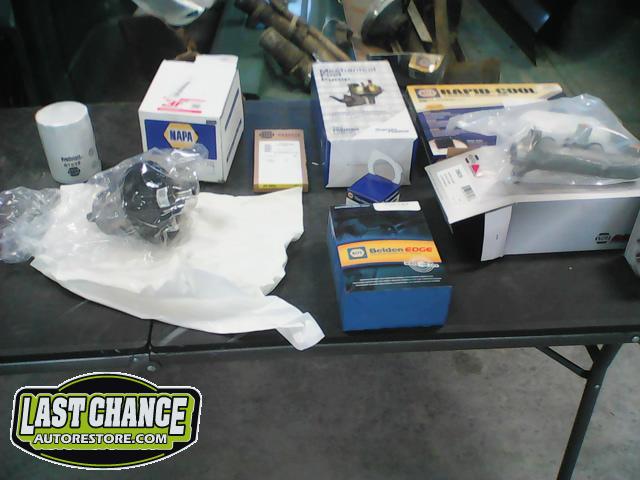 The water pump was worn (we replaced it with a new one, not a rebuilt one). A complete new high quality engine gasket set was installed along with new seals (including a new rear main seal).