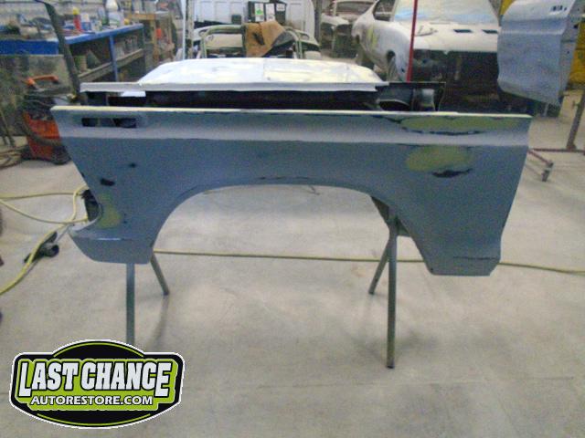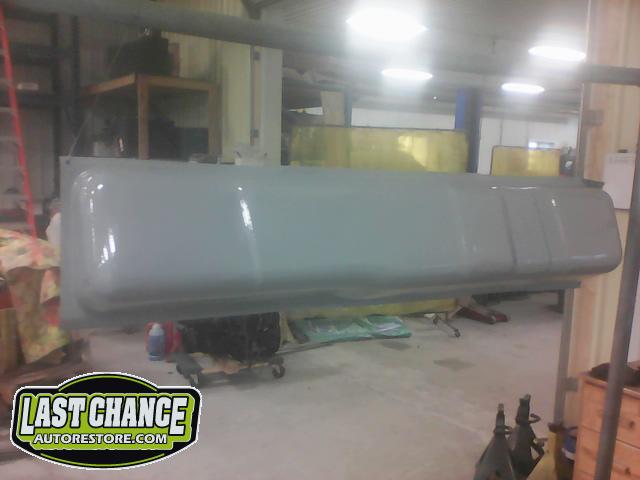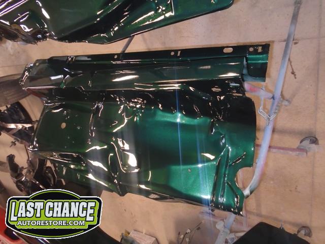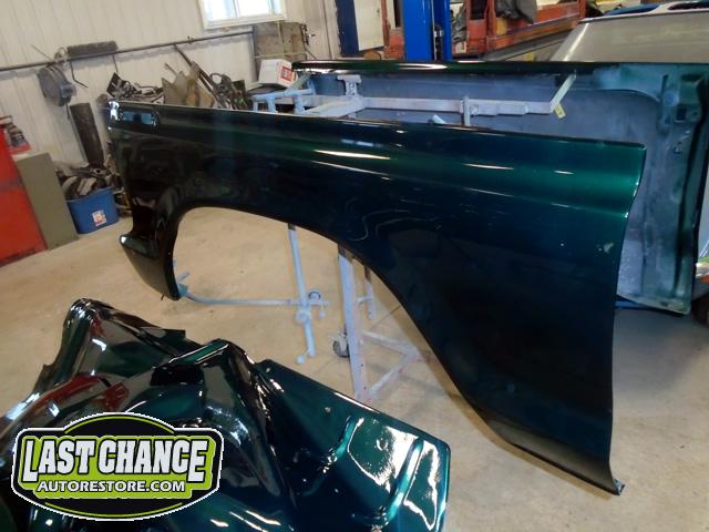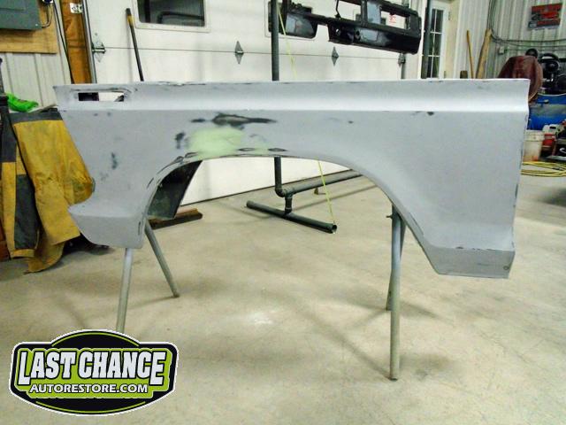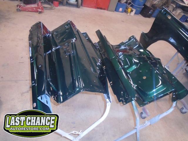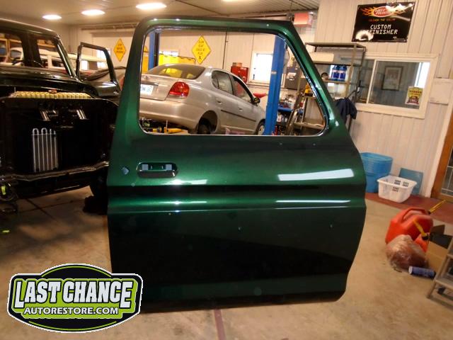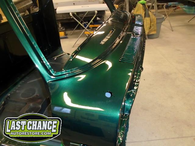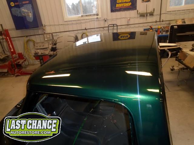 This process required numerous hours of block sanding, beginning with 80 grit sandpaper and proceeding with 120 grit, 180 grit, 240 grit, up to 320 grit (the cab received another spray of high build primer between each grit of sandpaper. The final grit of sandpaper to 400 grit, ensuring a factory smooth looking surface before the special Emerald Green Metallic paint finish was applied.