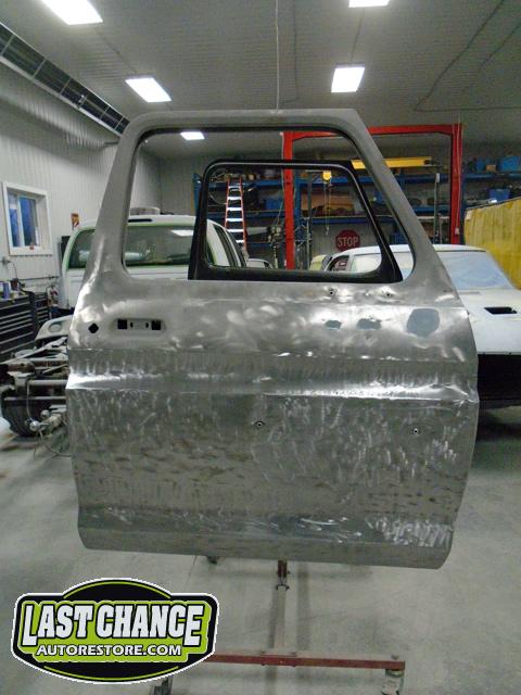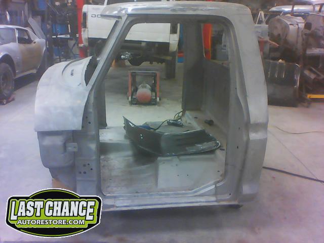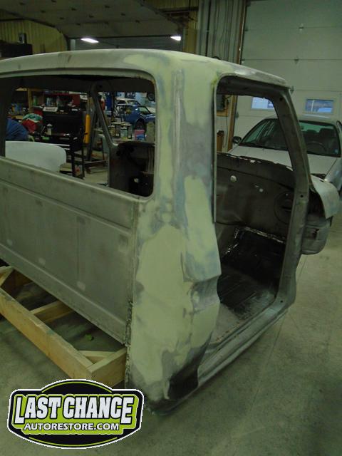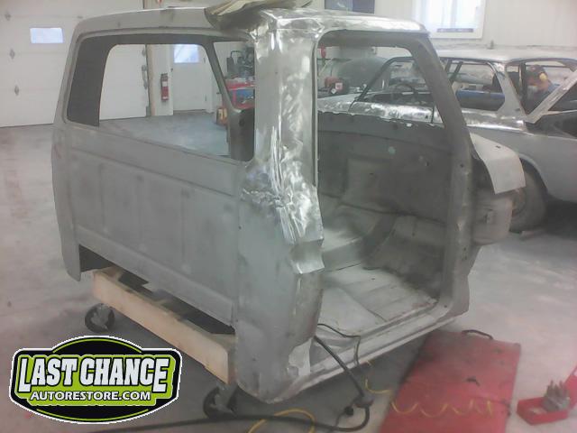 Our attention turned to the cab of the truck next. After the cab was media blasted rust areas were exposed. We cut out the rusted sections and welded in new high quality replacement panels where needed.