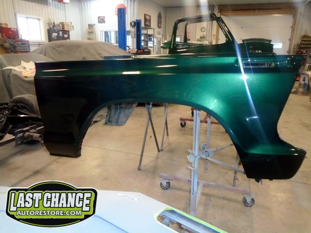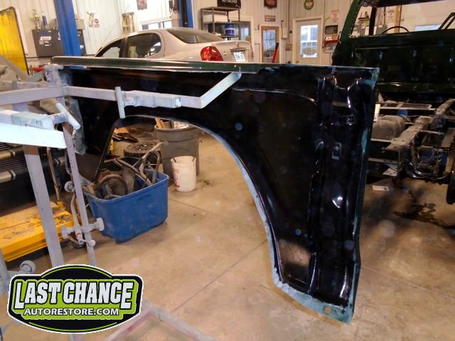 The cab, both inner and outer front fenders and both front doors along with many other parts received its special green paint and it looks fantastic!