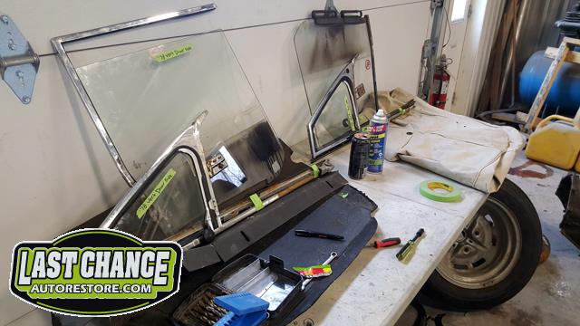 Both doors were taken apart (door panels, window regulators, glass, handles and trim). The complete interior was also removed (old nasty carpet, underlay and all trim along with the complete dash board assembly.