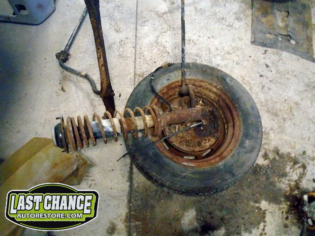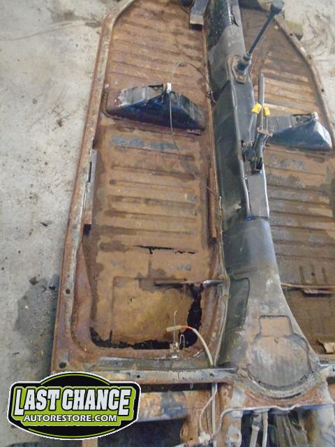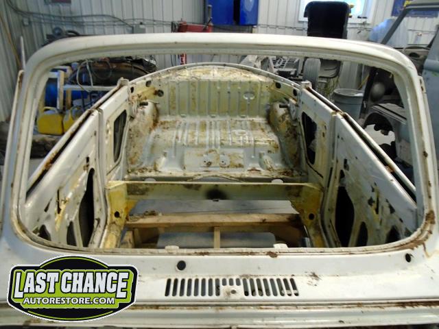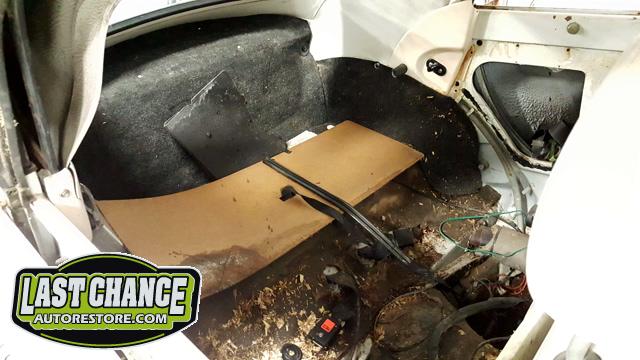 The front seats were removed (with their very rusty seat frames), and the rear seat cushion and back were removed next.