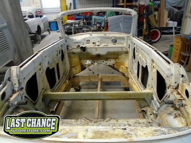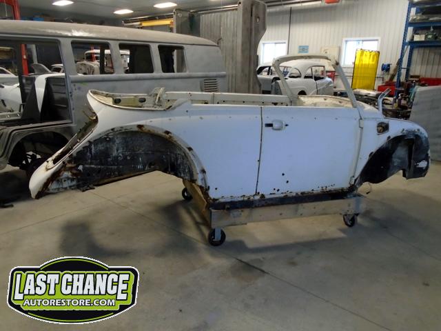 Winnie came to our spa for a total Ground Up / Pan Off restoration. There was a special "triple white" (meaning white exterior paint, white interior and a white convertible top) edition that was built in limited supply for the Canadian market place.