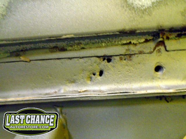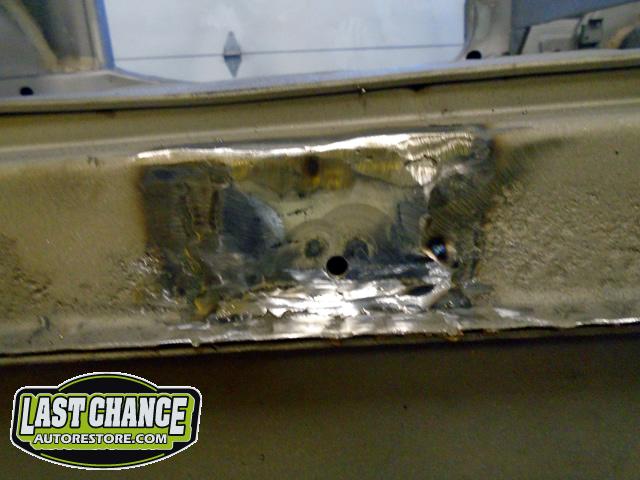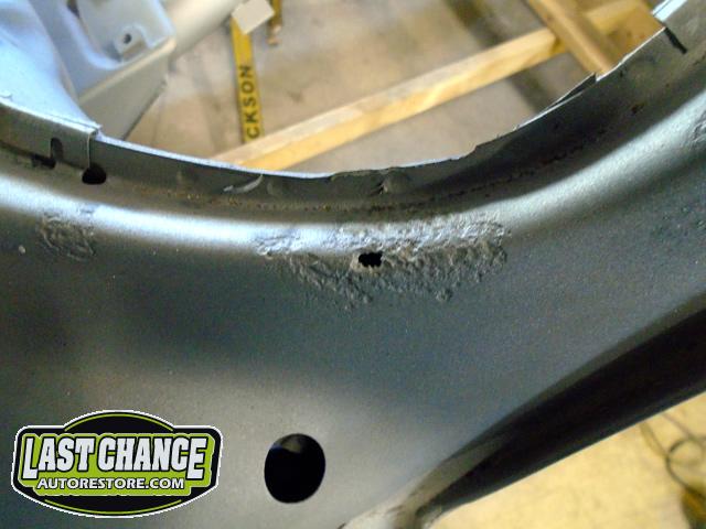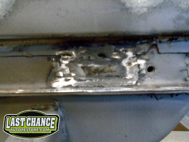 The rusted out areas were cut out and new steel patches were made and welded into place. All of the welds were ground smooth.