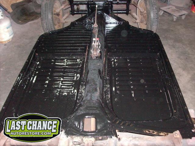 The body has never been off of the factory chassis (pans) until now. It is a "numbers matching" chassis and body, but not the original engine. We will be restoring it to similar factory specifications, but with several upgrades.