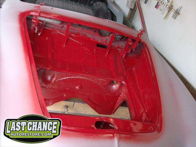 The original Cherry Red Volkswagen paint looked more like a red primer (which we do not care for). We painted this Ghia an authentic VW colour, "Ruby Red" (code #L456) which looks great!