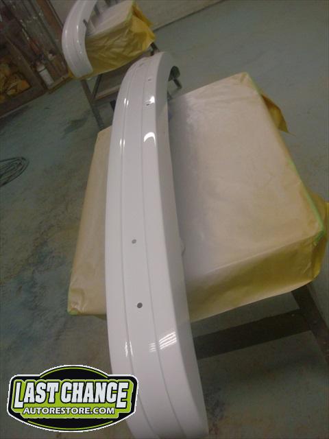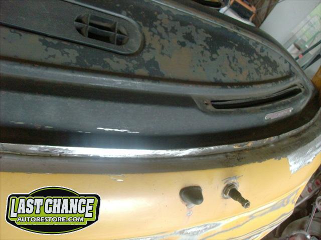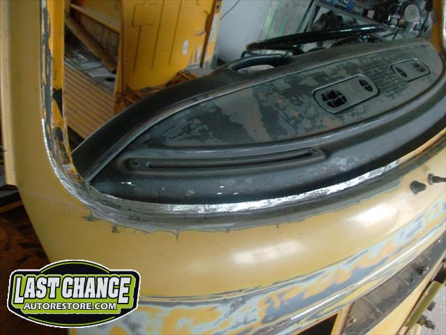 Now that Dahlia has her correct Marino Yellow paint, we turned our attention to the bumpers. After rust and dent repairs were completed, we painted them too. We also fixed Dahlia's dash top, now in the correct satin black finish. She now has her front bumper installed, tail lights are in, headlights installed and the repaired front grille and front marker lights are back too.