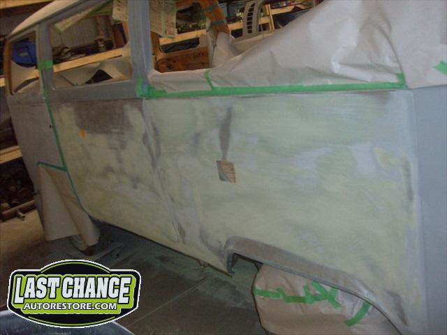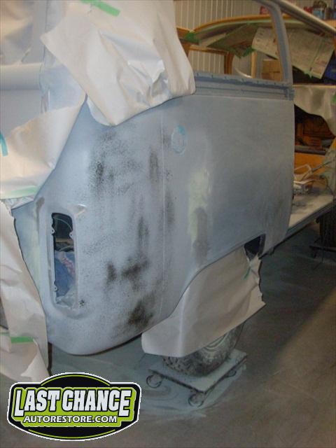 Now that the fabrication is complete, we turned our attention to the body smoothing. Lots and lots of block sanding and use of special high build primers. We made certain to recreate the correct factory seams and creases. This step was very important and time consuming, but the finished product will be worth it!